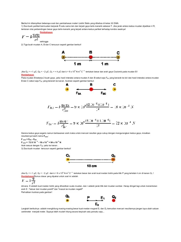 Konsep dan contoh soal hukum coulomb gaya coulomb fisika sma kelas 12 lakonfisika net source: Cara penyelesaian soal geometri transformasi. 76678369 contoh soal dan pembahasan listrik statis kelas 12. Rangkuman materi listrik statis kelas 12. Uraian materi, contoh soal, soal latihan dan soal evaluasi. Pembahasan soal fisika listrik statis tentang . Tayangan video pembelajaran berikut disertai contoh soal dan pembahasannya: . Play this game to review physics. 11 20 soal dan kunci jawaban listrik statis. Jika g 10 ms 2 dan permitivitas udara adalah 885 10 12 c 2 nm . Soal dan pembahasan listrik statis sma kelas xii. Listrik statis merupakan salah satu materi fisika yang dipelajari di kelas 12 semester 1, tidak sedikit siswa yang merasa kurang memahami . Pembahasan soal listrik statis gurumuda net.